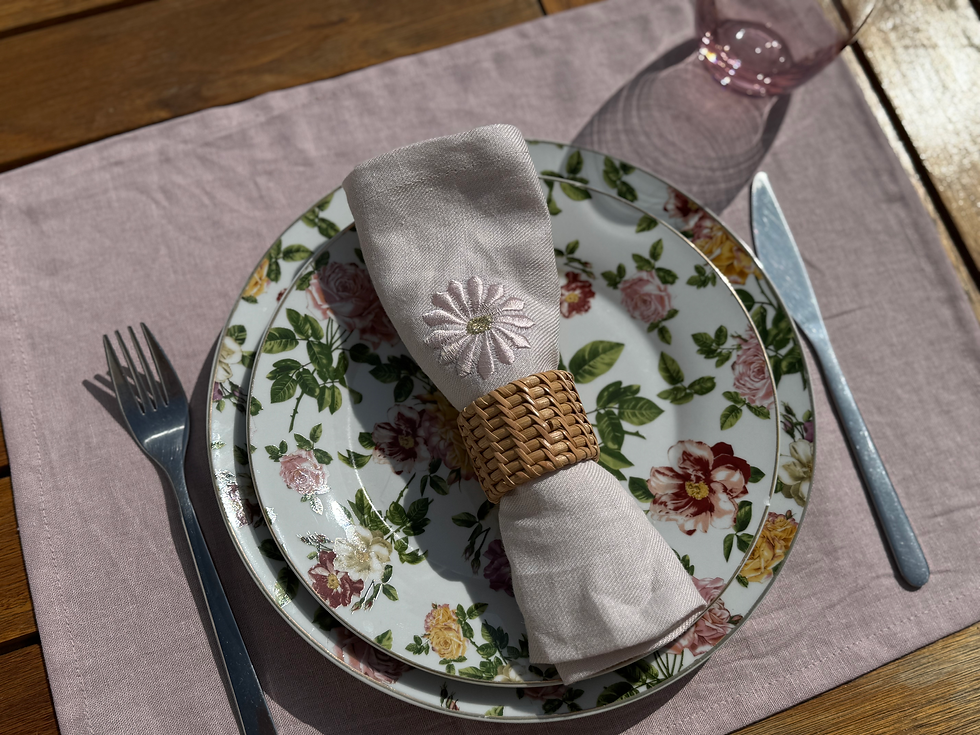 Ensemble chic 6 sets de table en lin avec serviettes brodées